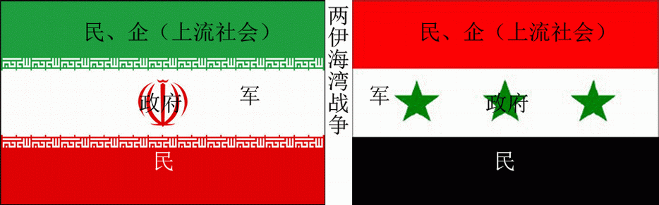 | 兩伊戰爭,伊朗政府為火色數為主筆五筆,伊拉克政府為綠星三個,為木,主為生關系,軍為白,都是金,軍打軍不存在生克,并非死冤家,為平手;上流社會木生火,下層社會火給水滅,伊朗民間輸; | |||||||||