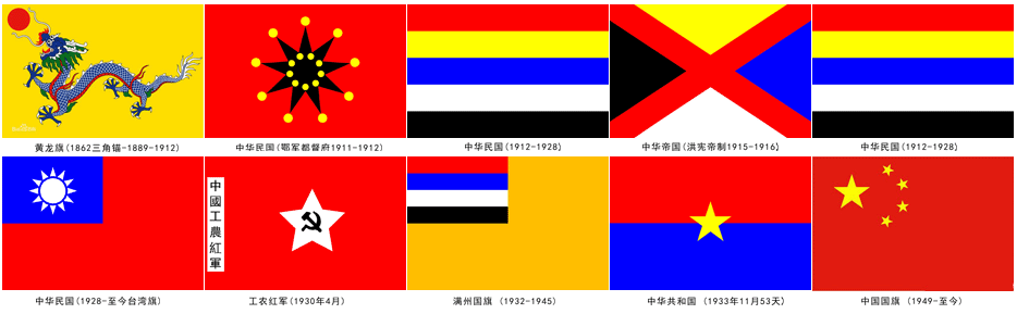 | 中國近歷史中出現的重要旗幟; | |||||||||
